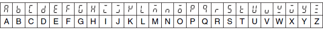 The following displays are use to represent the characters for parameter names on the Temperature Controller.