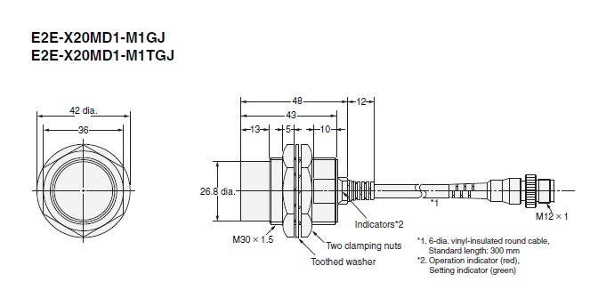 | Connection method | Pre-wired M12 connector models(Cable length: 0.3 m) |
