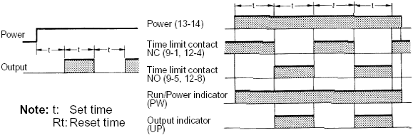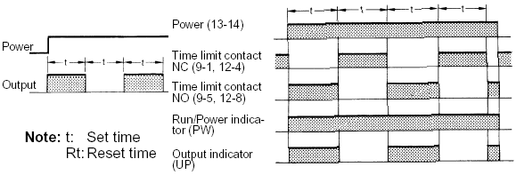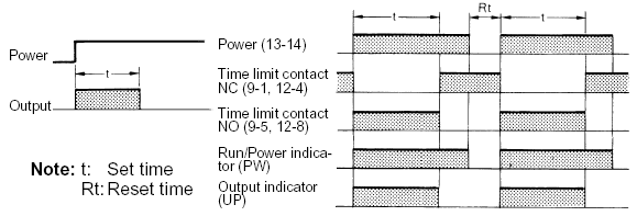 | Operating mode | ON delay, Interval, Flicker OFF start, Flicker ON start, Pulse Operation (use in interval mode, connect power supply terminals as pulse operation) |