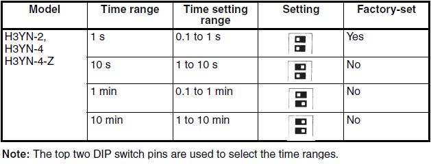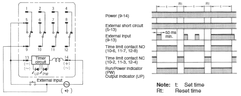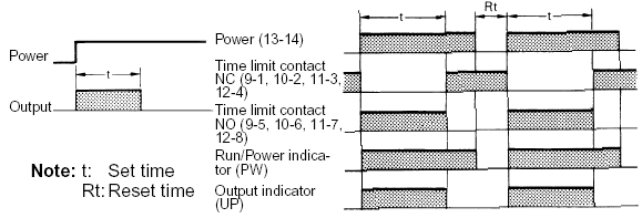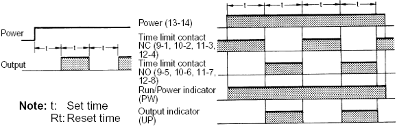| Operating mode | ON delay, Interval, Flicker OFF start, Flicker ON start, Pulse Operation (use in interval mode, connect power supply terminals as pulse operation) |