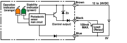 | Control output (Residual voltage) | (DC) 1 V Max. (Load current: Less than 10mA) (DC) 2 V Max. (Load current: 10 to 100 mA) |
