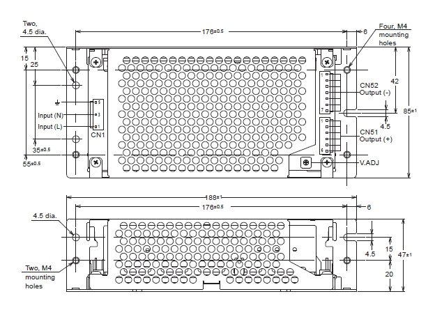 | Note at DC input | The range for compliance with EC Directives and safety standards (UL, EN, etc.) is 100 to 240 VAC (85 to 264 VAC). |