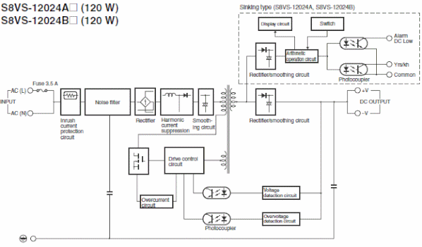 | Note at DC input | The range for compliance with EC Directives and safety standards (UL, EN, etc.) is 100 to 240 VAC (85 to 264 VAC). |