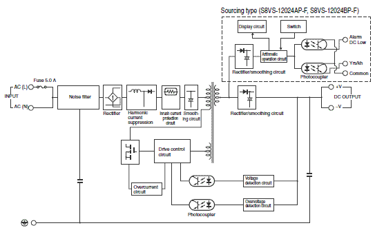 | Note at DC input | The range for compliance with EC Directives and safety standards (UL, EN, etc.) is 100 to 240 VAC (85 to 264 VAC). |
