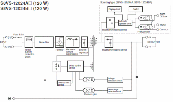 | Note at DC input | The range for compliance with EC Directives and safety standards (UL, EN, etc.) is 100 to 240 VAC (85 to 264 VAC). |