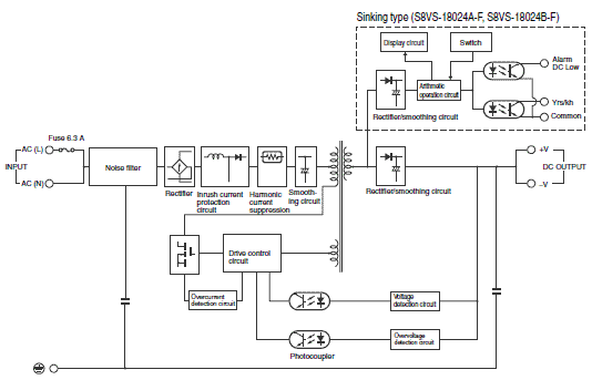 | Note at DC input | The range for compliance with EC Directives and safety standards (UL, EN, etc.) is 100 to 240 VAC (85 to 264 VAC). |