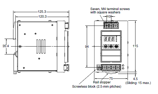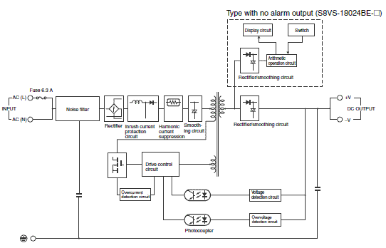 | Note at DC input | The range for compliance with EC Directives and safety standards (UL, EN, etc.) is 100 to 240 VAC (85 to 264 VAC). |
