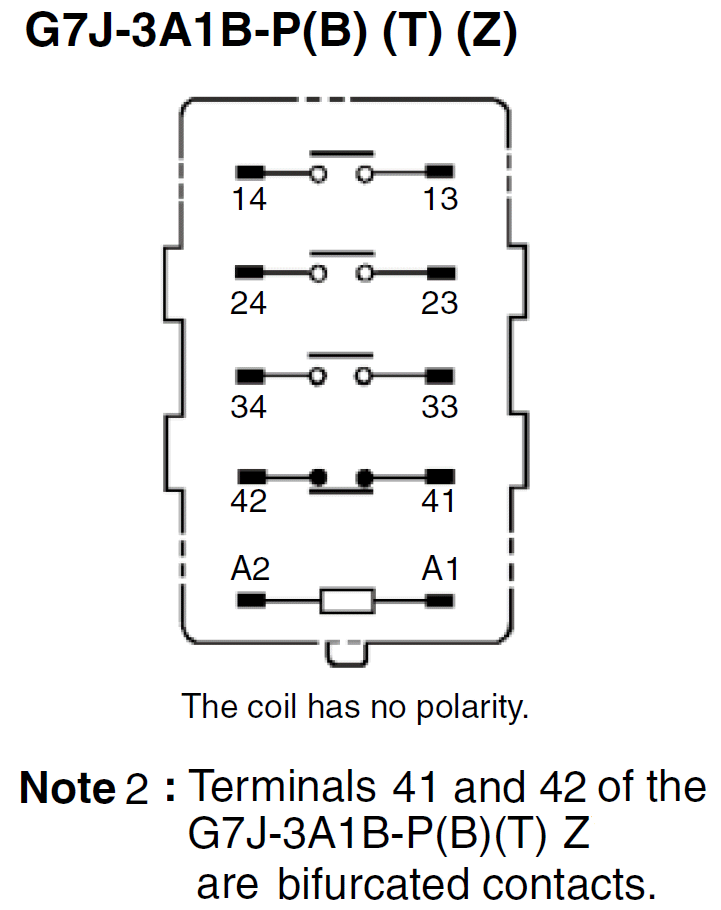| Insulation resistance | Between coil and contacts: 1000 MΩ min. (at 500 VDC) Between contacts of different polarity: 1000 MΩ min. (at 500 VDC) Between contacts of same polarity: 1000 MΩ min. (at 500 VDC) |