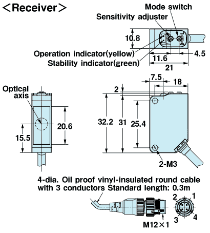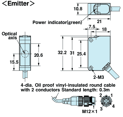 | Connection method | Pre-wired M12 connector models (Cable length: 0.3 m) |