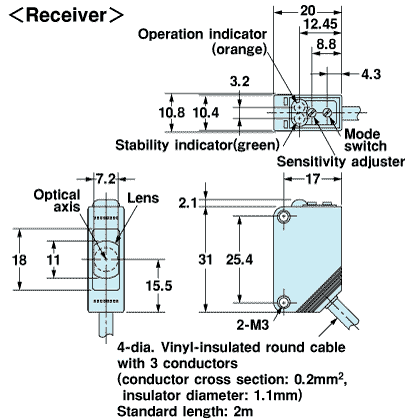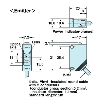 | Current consumption | Emitter: 15 mA DC Max. Receiver: 20 mA DC Max. |