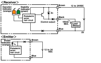 | Control output (Residual voltage) | (DC) 1 V Max. (Load current: Less than 10mA) (DC) 2 V Max. (Load current: 10 to 100 mA) |