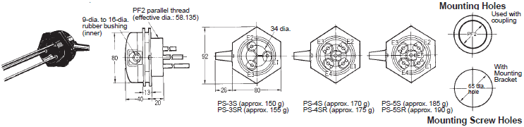 Note: The PS-3SR, PS-4SR, and PS-5SR have built-in resistor of 6.8 kΩ and used for the two-wire 61F models.