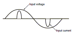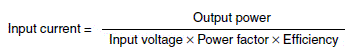 Standard Switch-mode Power Supplies directly rectify AC input current. Usually, rectification is achieved using capacitor inputs and a smoothing capacitor through which a reactive current is allowed to flow. Therefore, the input current depends on the output power, input voltage, power factor, and efficiency, as follows: