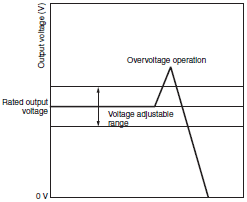 (When the overvoltage protection circuit operates, the Power Supply itself may be malfunctioning. When restarting the input power after the overvoltage protection circuit has operated, turn the input power ON with the load line disconnected and check the output voltage.)