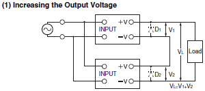 There are two application methods available when the outputs from multiple Power Supplies are connected in series: