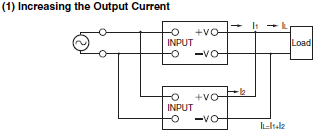 There are two application methods available when the outputs of multiple Power Supplies are connected in parallel: