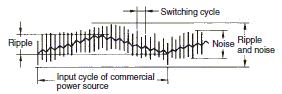 Since Switch-mode Power Supplies operate at high frequencies (i.e., as high as 20 kHz or more), the DC output will contain ripple and noise. The following figure shows a representative waveform for ripple and noise.