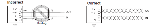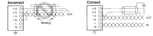Remote sensing and remote control signal lines must always be wired separately using shielded cables to prevent faulty operation caused by the induction of noise. Noise can be induced when these signal lines are laid together with input lines or power lines, which often carry noise.
