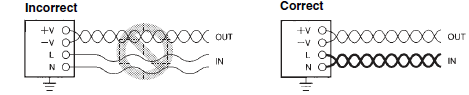 Noise will be induced on the output lines if they are laid together with or close to input lines.