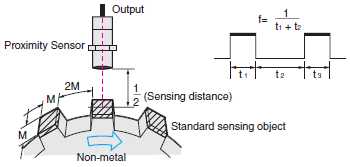 t2: The interval from the point when the standard sensing object moves out of the Sensor sensing area to the point when the Sensor output turns OFF.