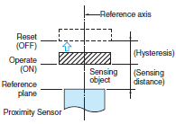 With respect to the distance between the standard sensing object and the Sensor, the difference between the distance at which the Sensor operates and the distance at which the Sensor resets.