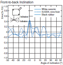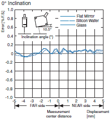At around -10.5° (the exact angle depends on the model), the amount of error increases due to regular-reflective light in relation to the optical axis of the Sensor. This affects Diffuse-reflective Sensors only.
